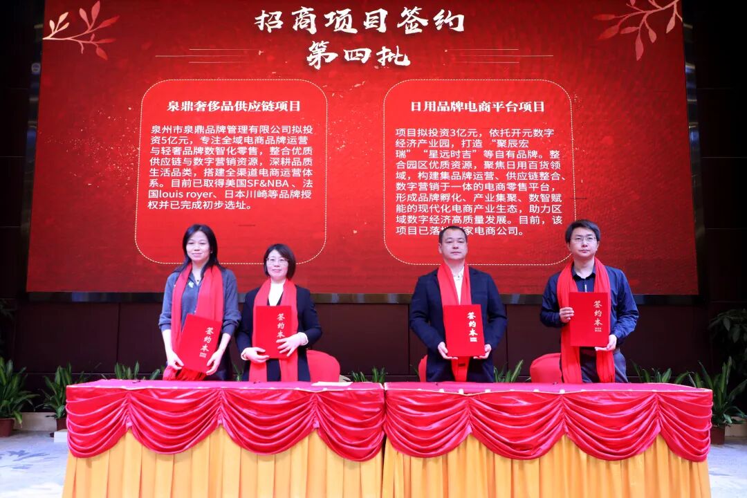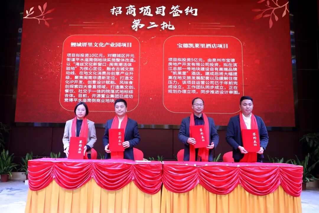 现场,泉州“海丝视界”融合媒体总部项目、泉州文旅酒店集群投资项目、鲤城厝里文化产业园项目、宝德凯莱里酒店项目等10个项目集中签约,涵盖数字经济、文旅酒店、人工智能、产业园区、跨境电商等领域,总投资额达75亿元。