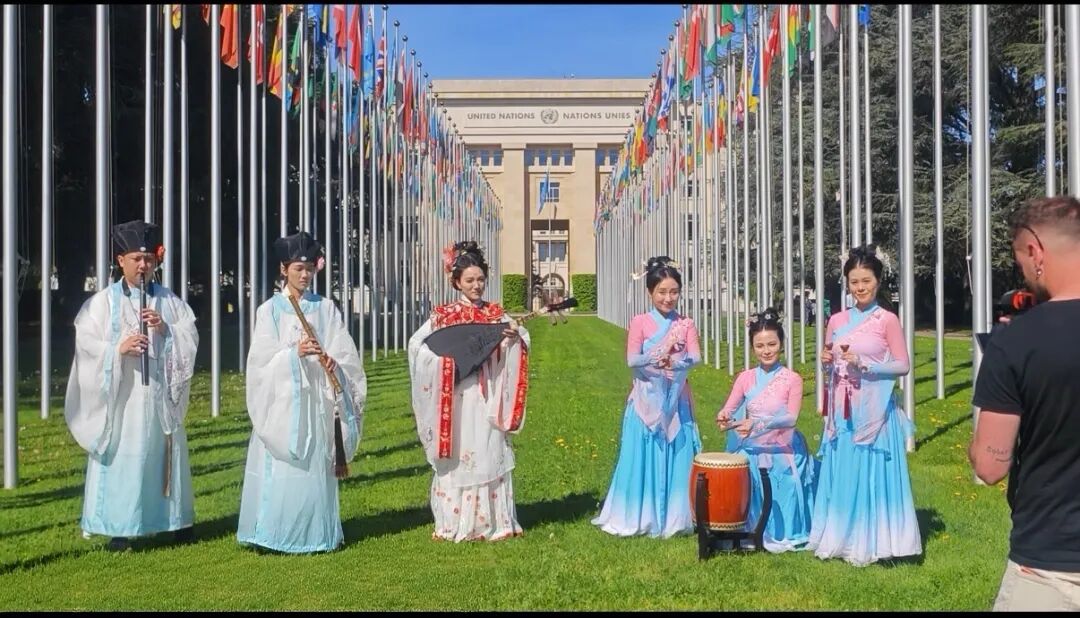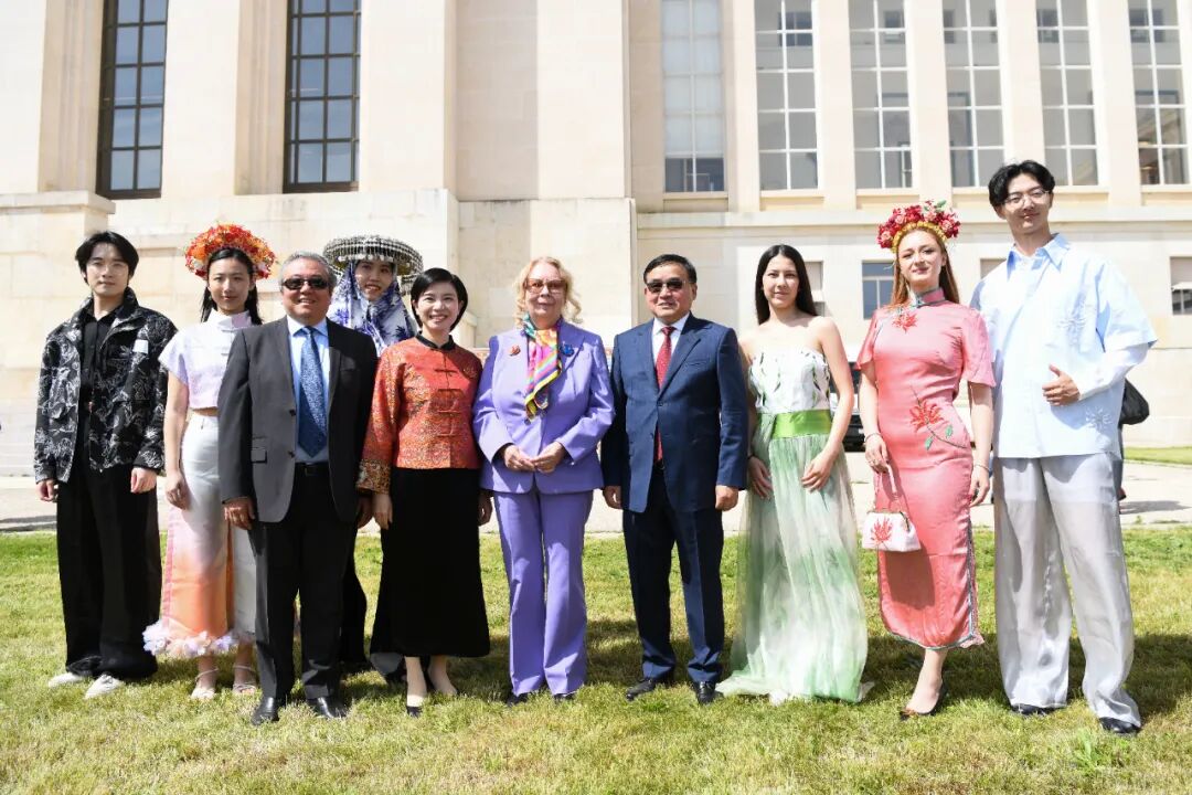 联合国日内瓦办事处总干事塔蒂亚娜·瓦罗瓦娅、中国常驻联合国日内瓦办事处和瑞士其他国际组织代表贾桂德大使、瑞中文化艺术交流协会会长赵元及鲤城区委常委、宣传部部长陈颖与演员们合影留念