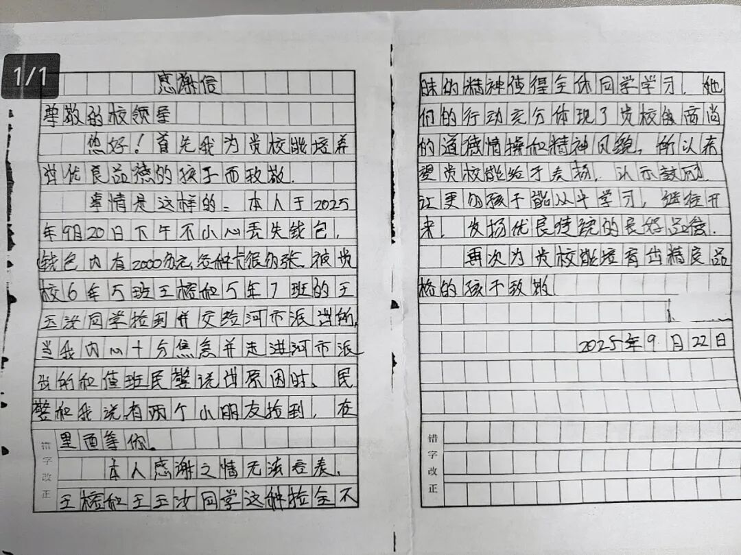 事后,杜先生特意联系了河市中心小学,向王榕、王玉汝两位同学送上锦旗和饱含谢意的感谢信及小礼品。学校也联合河市派出所专门对两位同学进行了表彰,以实际行动传递正能量。