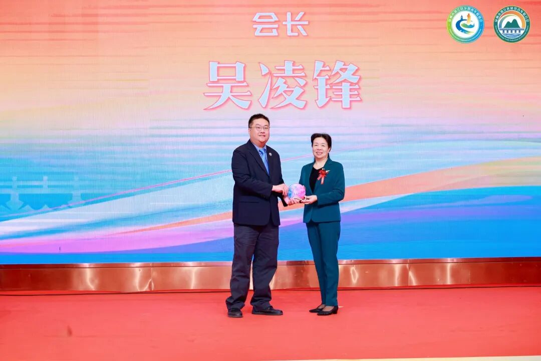 郭宁、温锦辉分别为名誉会长颁授任职聘书。