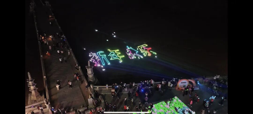 23:55时分,现场活动进入跨年倒计时环节,现场游客朋友,纷纷拿起手机,打开手电筒,大声倒数。“十!九!八!七!六!五!四!三!二!一!新年快乐!”零点钟鼓声响起、全场欢呼,夜间灯光秀与数字效果交相辉映,光影秀达到最高潮。游客朋友们争相拍照留念,与千年洛阳桥共启新年。