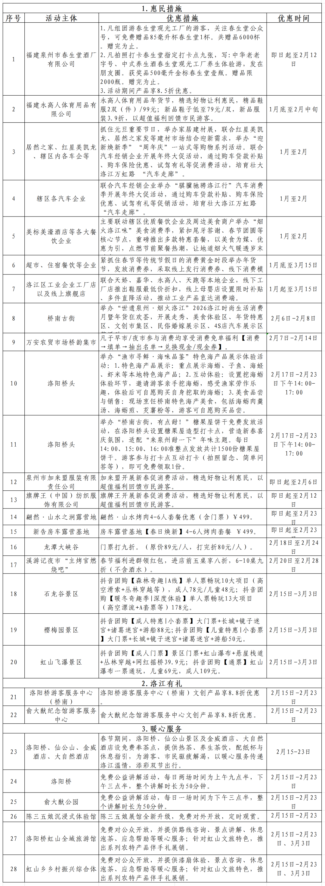 “悠游洛江·喜乐过年”2026年春节元宵文旅促消费惠民措施汇总表