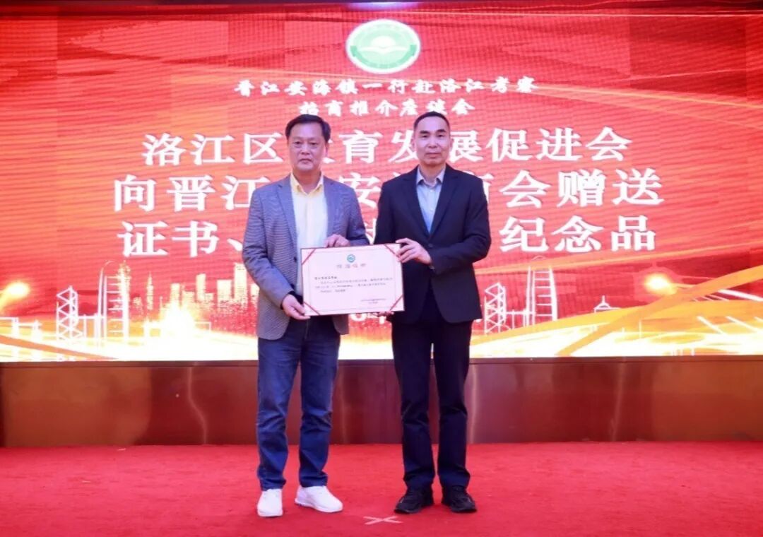现场举行捐赠仪式,吴清标代表安海商会向洛江区教育发展促进会捐赠30万元,林坤聚代表洛江区教育促进会向安海商会赠送证书、感谢状和纪念品。