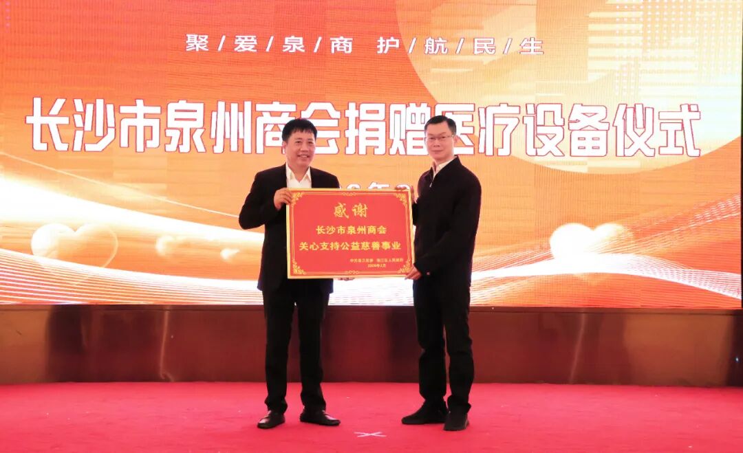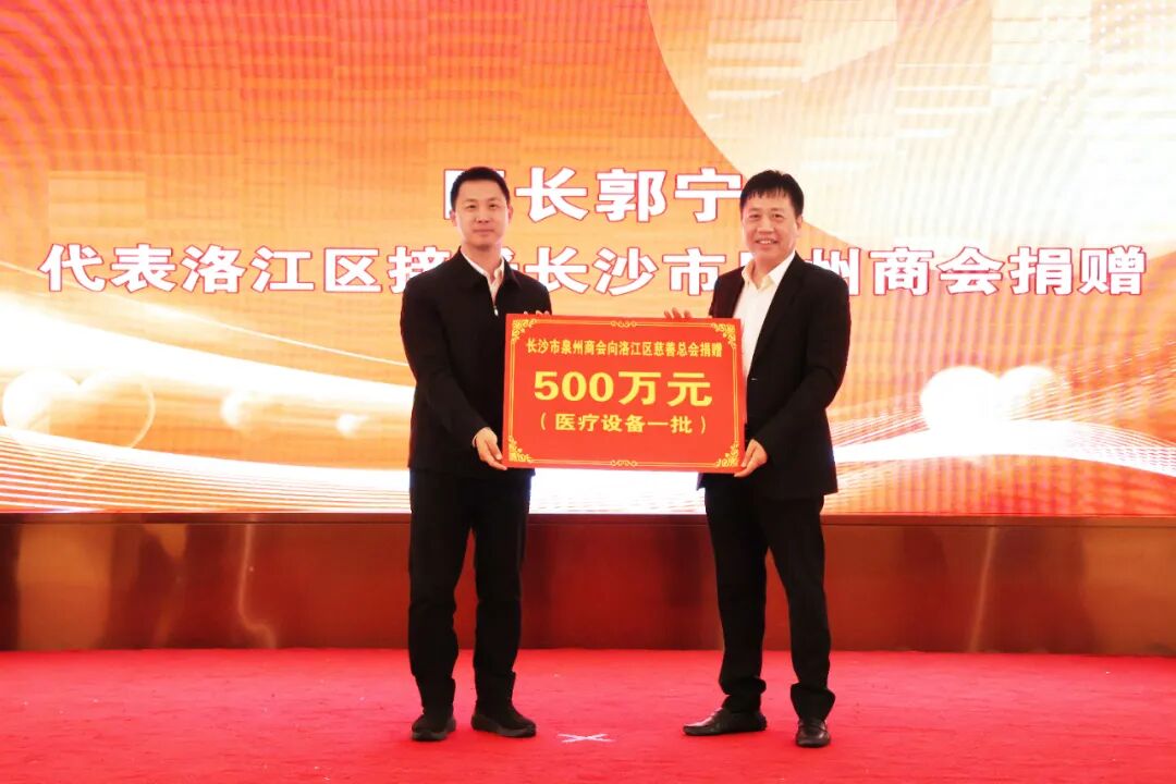 2月11日,长沙市泉州商会向洛江区捐赠价值500万元的医疗设备。洛江区委书记唐春晓,区政府区长郭宁,区委常委、宣传部部长张荣伟,区政府副区长杜仁义,区慈善总会会长林新平参加捐赠仪式。