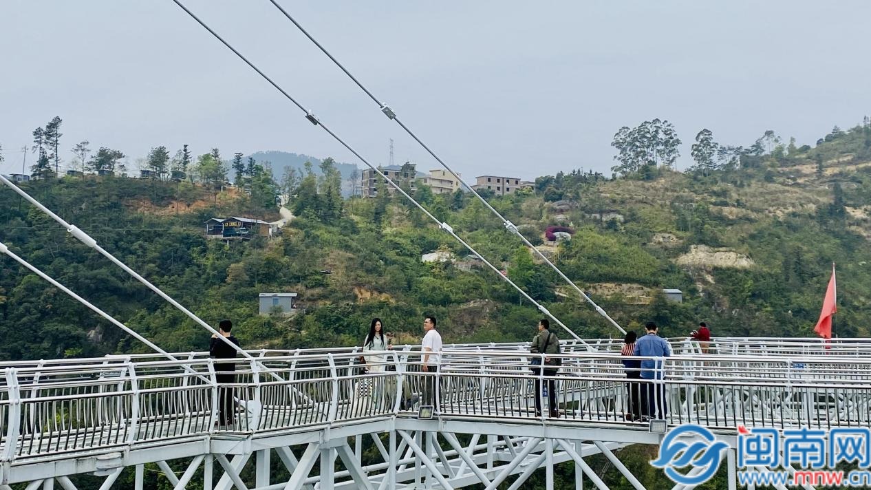 在樱梅园,蜿蜒的“小长城”与春色相映成趣,采风团拾级而上,俯瞰群山叠翠,用相机定格如画风光;走进石龙谷,旱滑道、丛林穿越等特色体验项目,让采风团成员沉浸式感受森林探险的趣味;虹桥飞瀑景区内,百余米落差的瀑布飞流直下,水雾缭绕间,玻璃悬廊等网红打卡点让采风团直呼震撼。