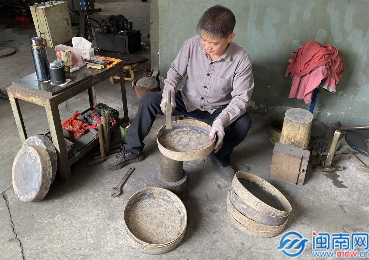 工人正在制作铜锣