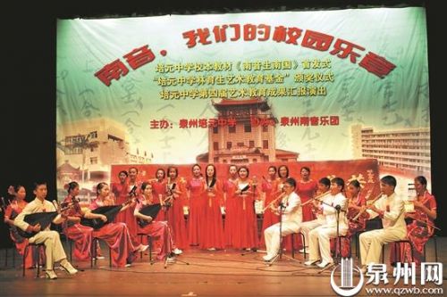 早在1989年,泉州市就把南音纳入中小学音乐教育课程,目前有200多所学校开设南音课。文化和教育主管部门已连续29年举办中小学生南音演唱、演奏比赛,涌现出数千名南音演唱新秀。目前,已在全市20多所中学(中职)、小学建设闽南文化传承基地学校,南少林五祖拳、拍胸舞、李尧宝刻纸、高甲戏、泉州歌诀、水密隔舱福船制作技艺、铁观音茶艺、德化瓷烧制技艺等项目进入中小学课堂,由各级非物质文化遗产传承人定期到学校授课,并组织编撰《泉州闽南文化校本系列教材》,以闽南民系与文化、闽南方言、闽南民俗、闽南名胜、闽南建筑、传统技艺、闽南先贤、闽南民间戏曲、闽南民间信仰等方面为主要内容,让学生深入认知、体验丰富多彩的闽南传统文化。