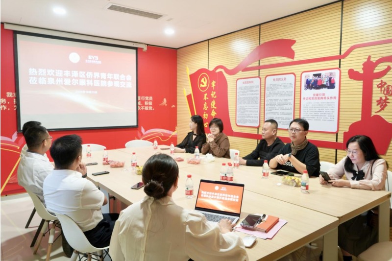 10月23日,丰泽区侨界青年联合会一行莅临泉州爱尔眼科医院,开展参观交流活动。侨青会常务副秘书长郭诗桐,理事林成家、黄小红,会员陈燕雅、黄添龙等代表共同参与。爱尔眼科福建省区健康教育服务部总监邓迪华、泉州爱尔眼科医院健康教育服务部基本医疗项目主任陈娜萍、综合眼病科主任李贵洲等陪同参观,并共同出席座谈会。
