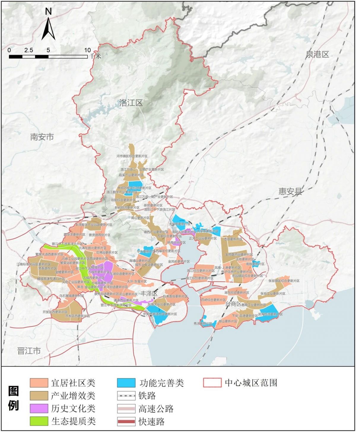 为改变以往单体项目、碎片化更新模式,《规划》系统性划定了73个城市更新片区(鲤城13个、丰泽23个、洛江14个、台商21个、开发区2个),并从中遴选出33个“十五五”重点更新片区。这33个重点片区被精准分类如下:历史文化类5个,宜居社区类14个,产业增效类8个,功能完善类6个。