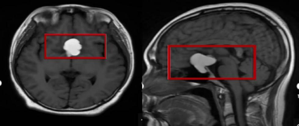 验光发现其左眼矫正视力仅0.5+,眼底排查仅见高度近视相关的豹纹状改变,无其他明显异常。经斜弱视与小儿眼科金丽文主任联合会诊,发现小伟左眼瞳孔偏大、对光反射迟钝,存在颞侧视野缺损。凭借多年从医经验,金丽文主任判断其视力下降并非单纯眼疾,建议立即完善颅脑MRI检查。结果显示,小伟头颅鞍区及鞍上有一约32.6mm×25.1mm×32.8mm的异常信号灶,视交叉受压。最终确认,颅内占位才是其视力下降、视野缺损的根源,随后小伟已在上海接受治疗。