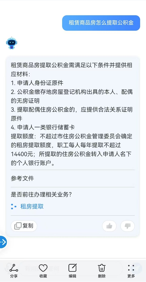 针对市民反映的“找不到办事入口、摸不清办理流程”问题,新服务的精准引导功能实现了突破性升级。当用户输入“我要办租房提取”“查询公积金余额”等具体需求时,智能助手将自动识别并推荐相关业务办理清单,用户可直接从中选择要办理的业务,无需在层层菜单中反复查找入口,大幅缩短办事准备时间。