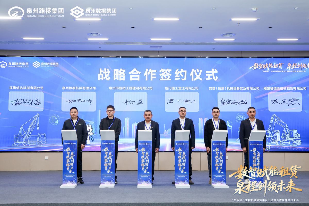 产业互联网的发展离不开生态合作。发布会上,泉州路桥工程建设有限公司与 10 家国内知名设备厂商完成签约。由此, “泉程租”初步构建起覆盖主流品牌、全品类机型的优质资源网络,为平台高质量运营奠定了坚实基础。