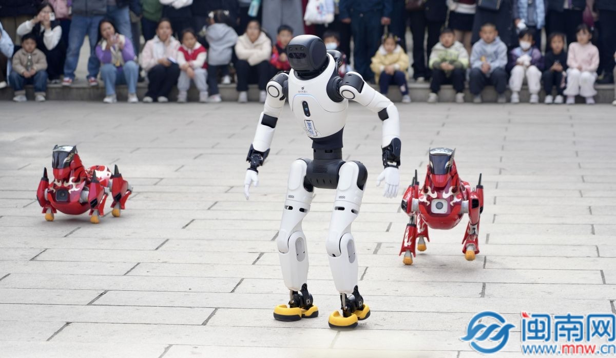 机器人与机器狗给市民游客带来精彩的演出