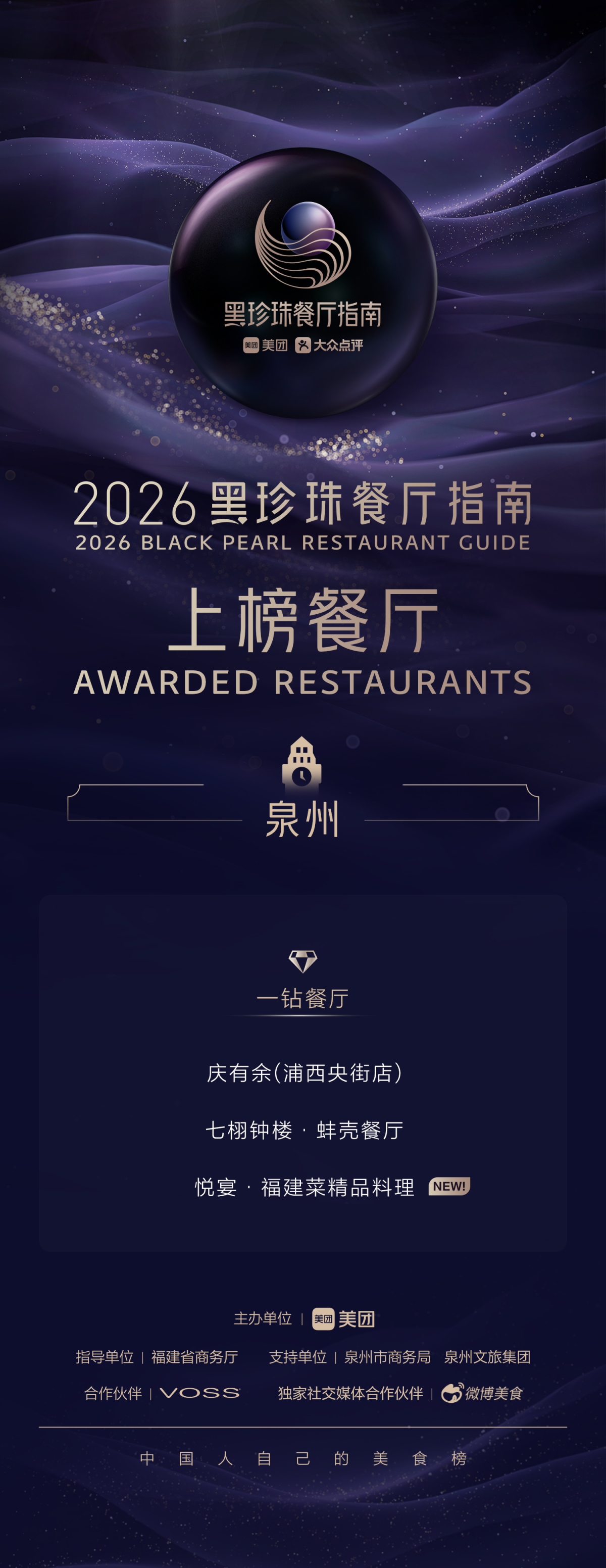 2026黑珍珠餐厅指南发布,泉州三家餐厅上榜