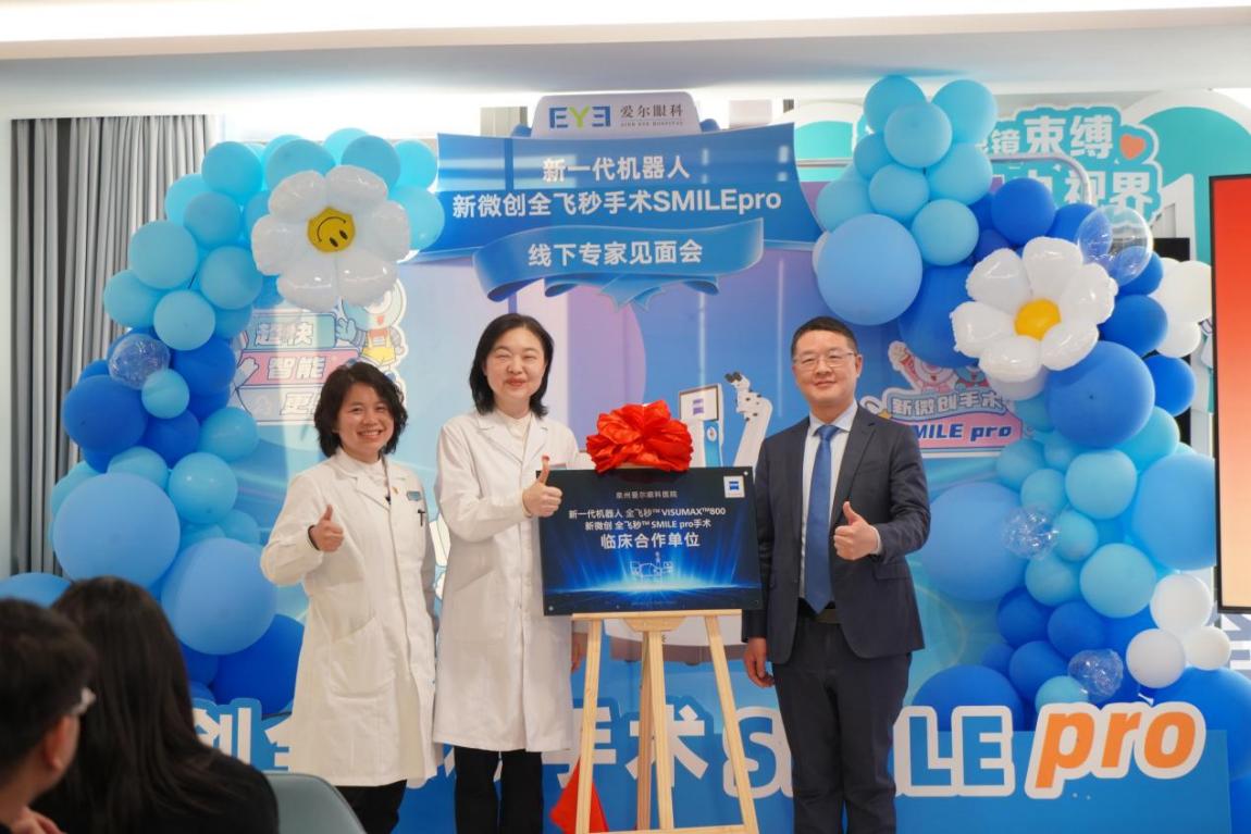 科普现场,卡尔蔡司福建区域总监颜斐嵘为泉州爱尔眼科医院授予 “新一代机器人全飞VISUMAX™800新微创全飞秒™pro手术临床合作单位”牌匾。