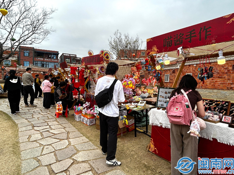 午后时分,记者走进古村落,街巷间满是沉浸式体验的乐趣。非遗手作摊位前围满了游客,蒲扇、头花、花灯等特色手作吸引着大家动手创作,指尖翻飞间,一件件饱含闽南韵味的手作新鲜出炉。