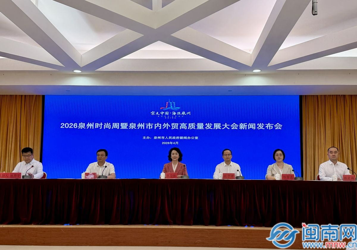 闽南网4月13日讯(闽南网记者 陈玉玲 文/图)13日下午,2026泉州时尚周暨泉州市内外贸高质量发展大会新闻发布会举行,发布大会筹备进展与核心亮点。据悉,本届大会将于4月17日正式启幕,持续至5月31日,通过55场全域联动活动、超万客商精准对接,实现“以时尚聚人气、以对接促贸易”的发展目标,助力 “世遗泉州 时尚之都”城市品牌升级。
