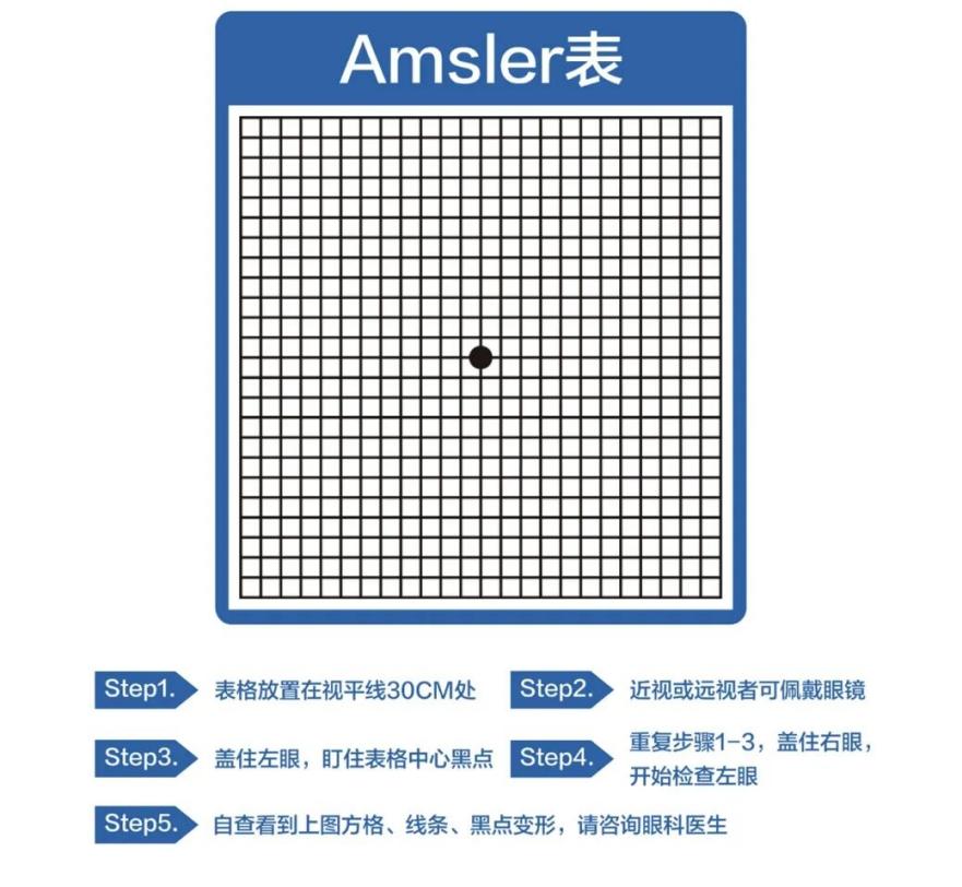 (△特别提醒: 阿姆斯勒方格表仅仅是一种辅助性的检查手段,不能作为确诊疾病的依据)