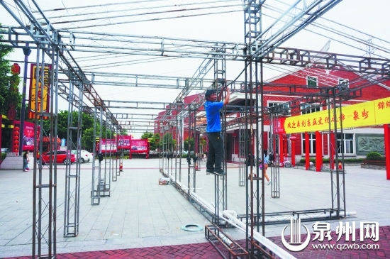 昨天上午,记者在锦绣庄民间艺术园看到,工人正在抓紧搭建展位框架,展位电线线路安装、排水管道布置等各项准备工作正有序进行。“整体的框架搭建今天就可完成,后续一些户外宣传资料、交通导向牌和功能区的设置等将陆续进行。”锦绣庄相关负责人介绍,预计在6月12日,各家参展单位就会进场,完成各展位的布置后,台湾特色庙会于14日开始正式对市民开放。