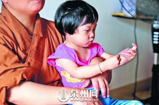 采访当天,老二小祺去了如愿法师的母亲家,不在寺里。“小祺应该是早产儿。2008年4月,她躺在门口,肚脐都还没干就被遗弃。看她瘦得皮包骨,我们都不敢抱。我给她称了称,只有两斤半。”如愿法师说,她怕自己照顾不好,便送到母亲家。现在小祺已上幼儿园大班,一放假便会回到寺里。