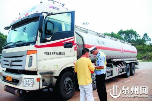 民警提醒,危险品运输车辆应配备相应品种和数量的消防器材,而且车速不宜过快,不得强行超车。 (泉州晚报记者李凯龙 通讯员黄颖 邱文峰 文/图)