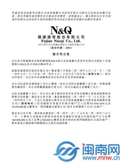 7、诺奇发声明确认主席丁辉失联 挪走公司2.86亿港元