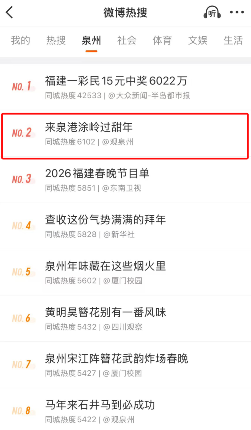 推介会的成功举办,让秀溪村的“甜蜜故事”通过短视频、朋友圈等渠道广泛传播。游客们在社交平台分享着亲手采摘的草莓沃柑、溪客小院的冰糖葫芦与围炉煮茶,#来泉港涂岭过甜年#话题持续刷屏,更一度登上微博热搜榜第二。口碑的持续发酵,让秀溪村的热度一波接着一波。