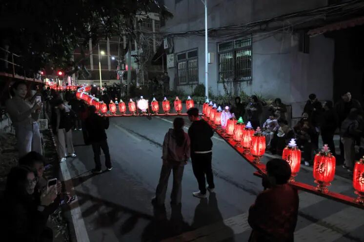 暮色初垂,鸠林村南庄自然村已是灯火璀璨、人声鼎沸。村民们按姓氏或角头,早早扛着灯架在指定点位集合,将一个个灯架首尾相扣、节节相连,组成蜿蜒数百米的“龙身”。
