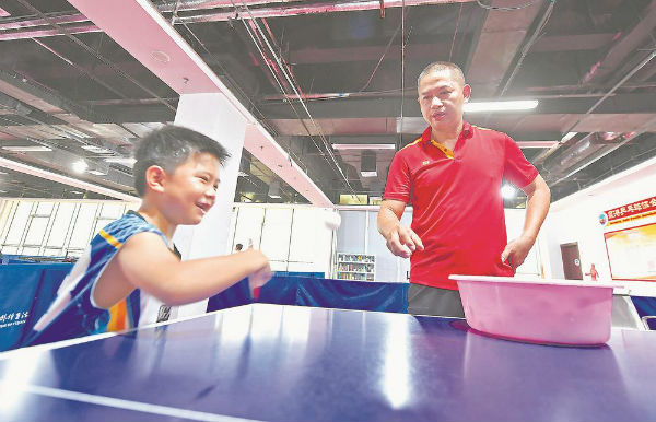 小学员在教练的指导下练习乒乓球。通讯员 林弘梫 摄