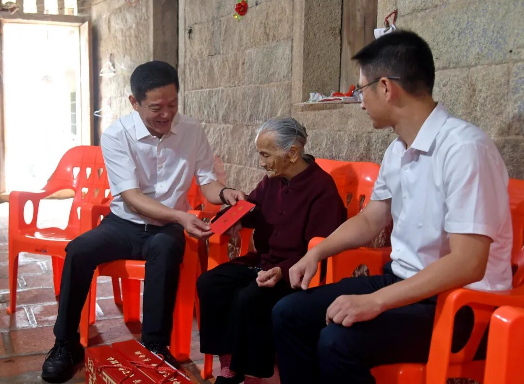 走进百岁老人陈宝妹家中,杨昌文快步来到老人身边,与老人亲切交谈。老人虽已年过百岁,但精神矍铄、思路清晰。杨昌文十分欣慰,“咱们是长寿之乡,老人的健康快乐就是咱最大的心愿。”并叮嘱家属细心照料老人起居,让老人乐享晚年。