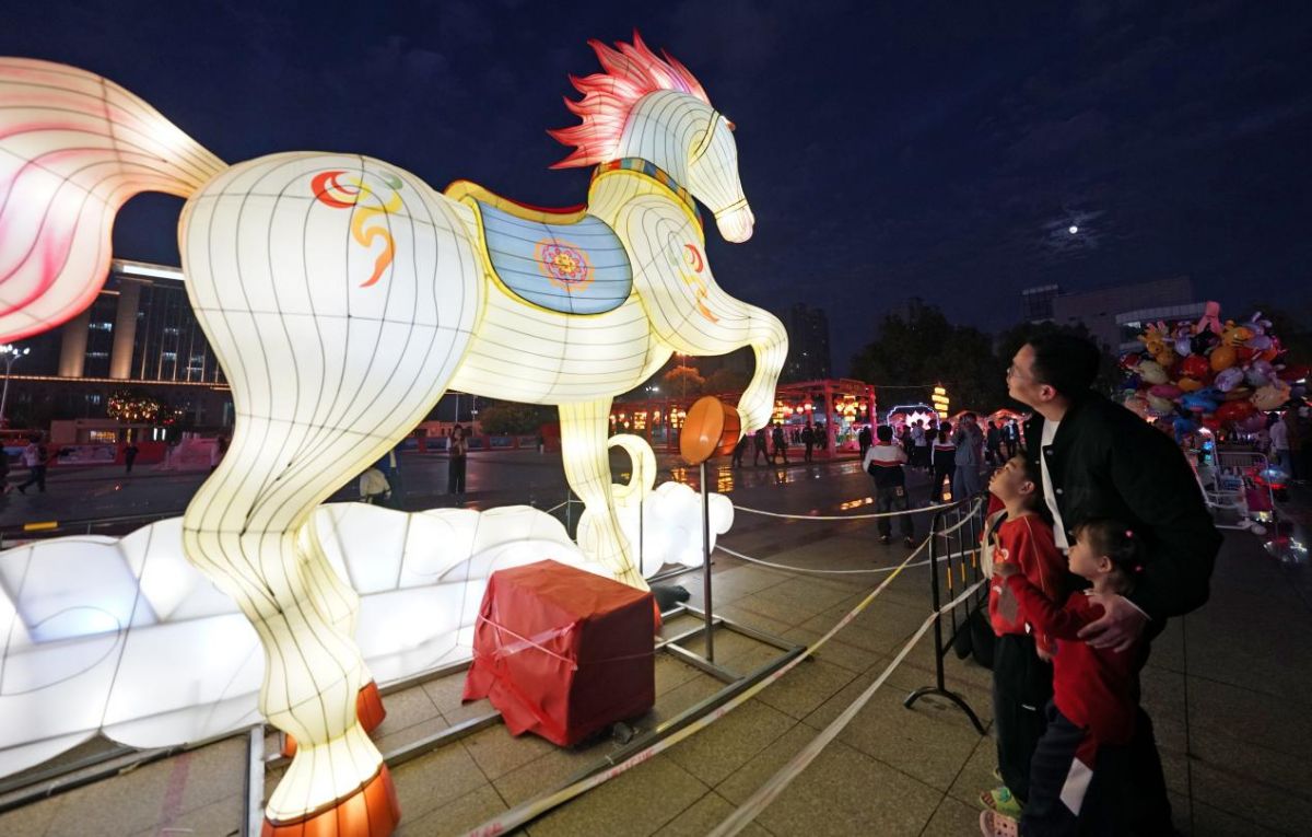 据悉,现场共布设“神马送福”主题灯组、“鲲鹏遨游”“凤凰展翅”“鱼跃龙门”等特色灯组以及灯柱、花灯、装饰灯近万盏。此次花灯展紧扣丙午马年寓意,突破传统陈设模式,融合科技创意与传统民俗,集节日亮化、主题灯展、网红打卡、航模表演于一体。