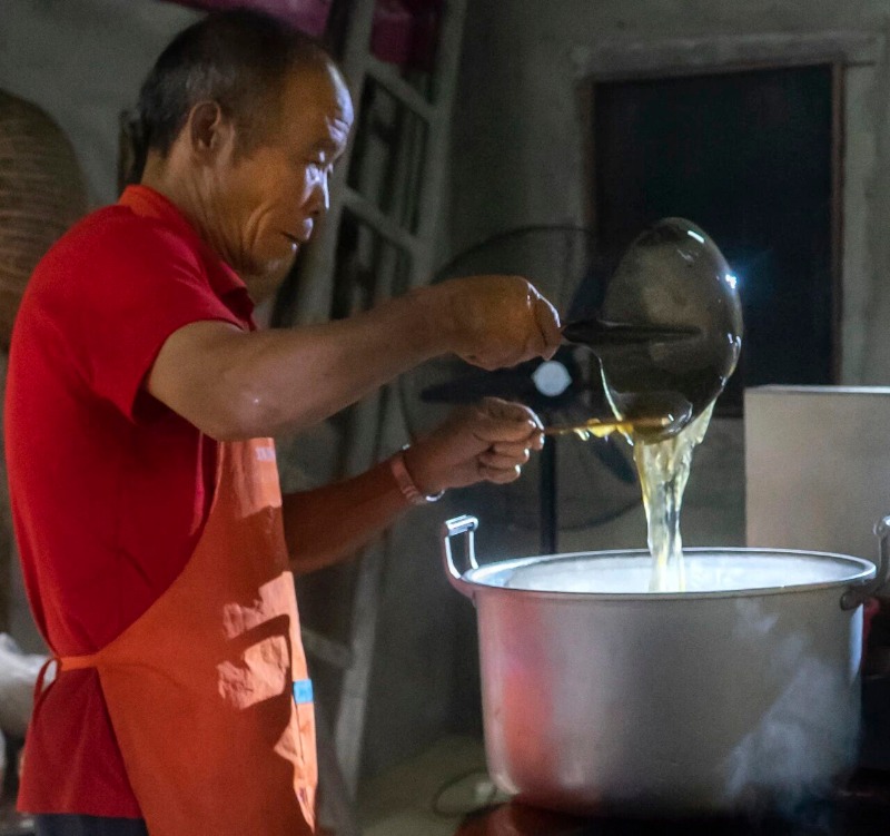 “我家制作麦芽糖的手艺是从太爷爷传下来的。”80后村民黄春色表示。尽管制作工艺繁琐,需经历培育、发酵、熬制等多道工序,他仍将这份手艺作为副业坚持经营,产品主要销往南安本地。