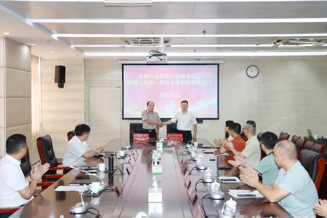 活动现场,在与会人员的共同见证下,泉州台商投资区管委会主任廖良结与中国(深圳)教育企业股份有限公司代表熊东胜正式签署战略合作框架协议。