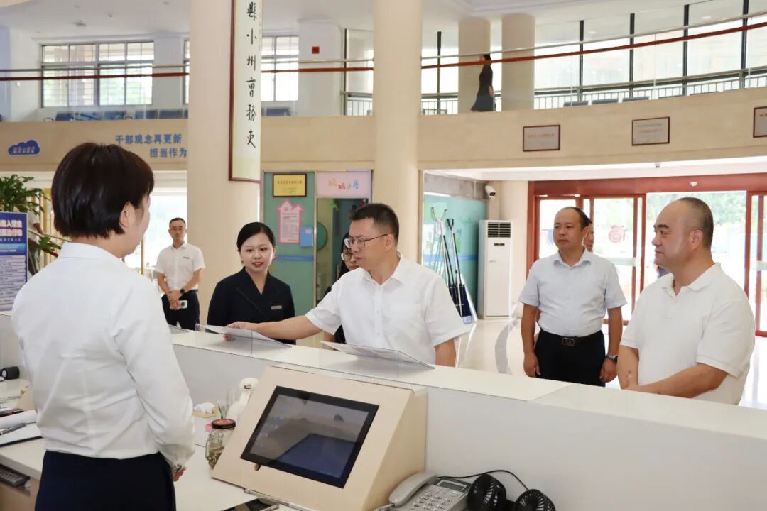 在政务服务大厅,廖良结一行先后察看企业开办、项目审批、台企服务等重点窗口,听取大厅整体布局、基础设施、功能分区、窗口设置及人员配置情况介绍,并与一线工作人员、办事企业代表深入交流,详细询问 “一窗通办”“全程网办” 等服务模式运行实效。