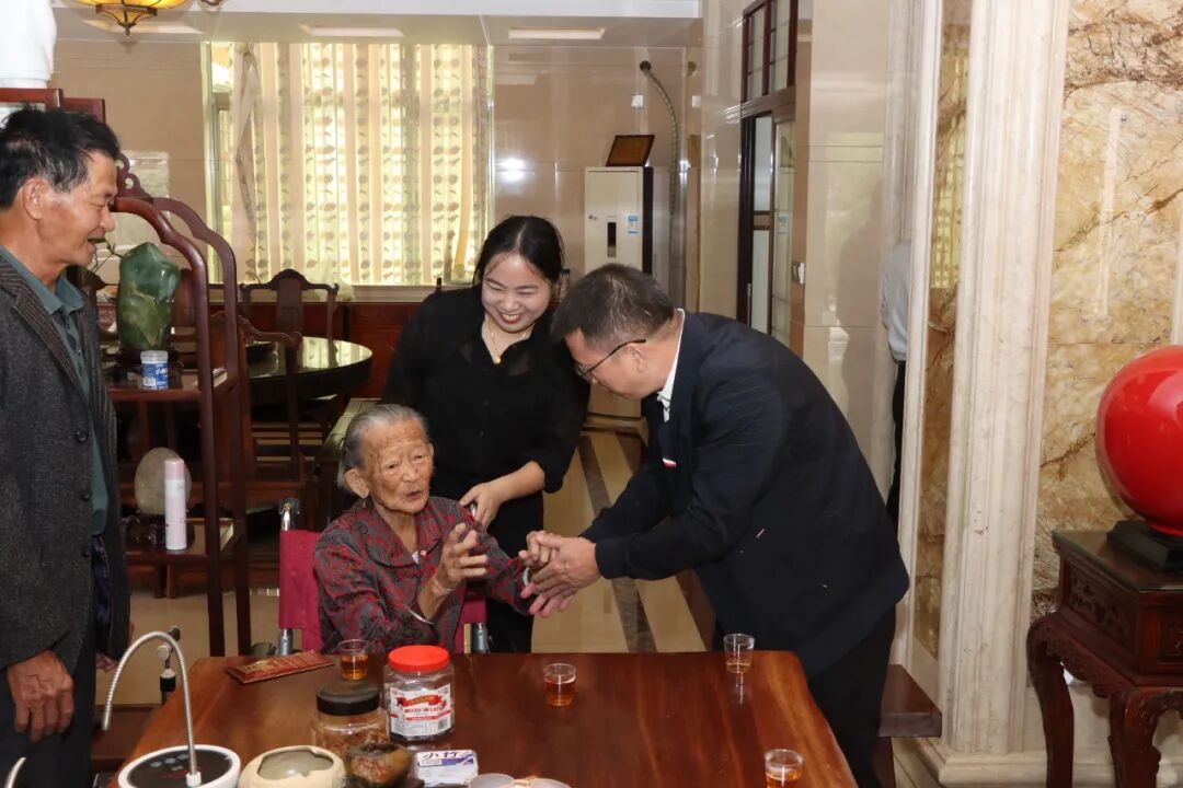 区管委会主任廖良结带队前往洛阳镇走访慰问百岁老人,他先后来到后亭村林格、湖滨花苑汪梅家中,每到一处,廖良结都与老人及其家属亲切交谈,仔细询问老人的饮食起居、身体状况和家庭照料情况,并送上慰问金和节日祝福。