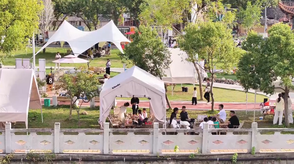 假日的石鼓湿地公园洋溢着盎然生机。游客漫步绿荫步道,尽览湖光草色;租借亲子单车或电动车穿梭小径,让微风伴行赏景。草坪音乐派对旋律轻快,露营区里炊烟与茶香袅袅交织,家庭烧烤的欢笑声、好友围炉煮茶的私语,为假日注入鲜活烟火气。