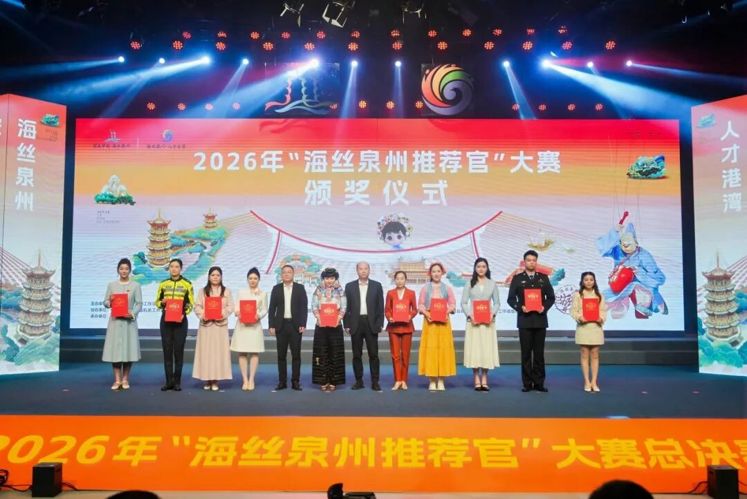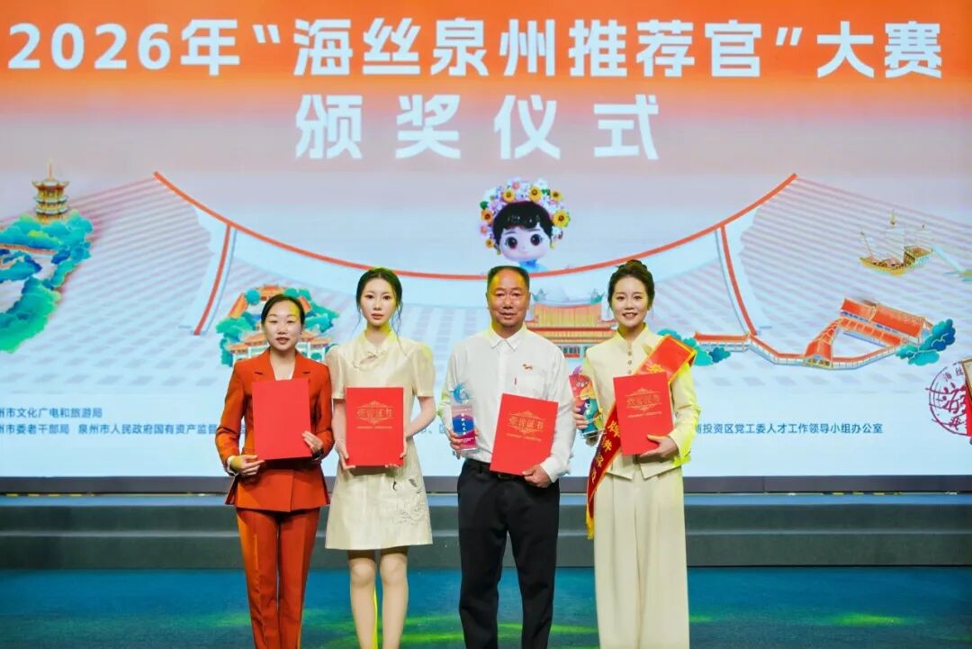 3月27日上午,“海丝泉州推荐官”大赛颁奖仪式在泉州广播电视台圆满落幕。自2025年12月大赛启动以来,全市17个赛区2000余名选手同台竞技,历经初赛、半决赛层层选拔,最终50名选手脱颖而出入围总决赛。永春赛区选手凭借扎实的讲解功底与创新的文化表达,在此次大赛中收获颇丰,斩获多项重磅荣誉!其中颜夏晖以总分第一的优异成绩斩获金奖!