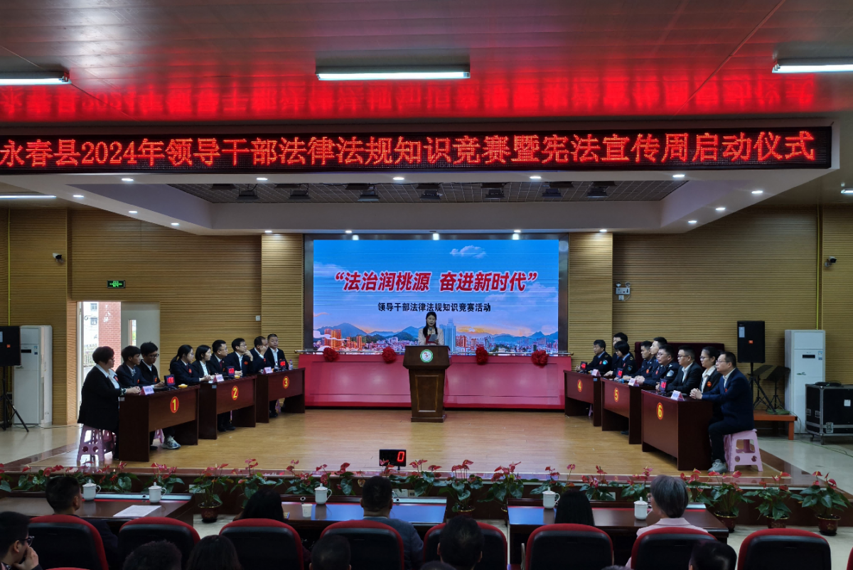 领导干部是法治建设的“关键少数”。永春县将法治精神作为高质量发展的“先手棋”,党政主官践行“第一责任人”职责,创新推出《领导干部应知应会法律法规知识清单》,构建“会前学法、任前考法、年终述法、实践用法”闭环体系。五年来,累计组织专题学法30余场,覆盖1.2万余名干部,开展任前“法考”34场556人次,实现领导干部年度述法全覆盖。