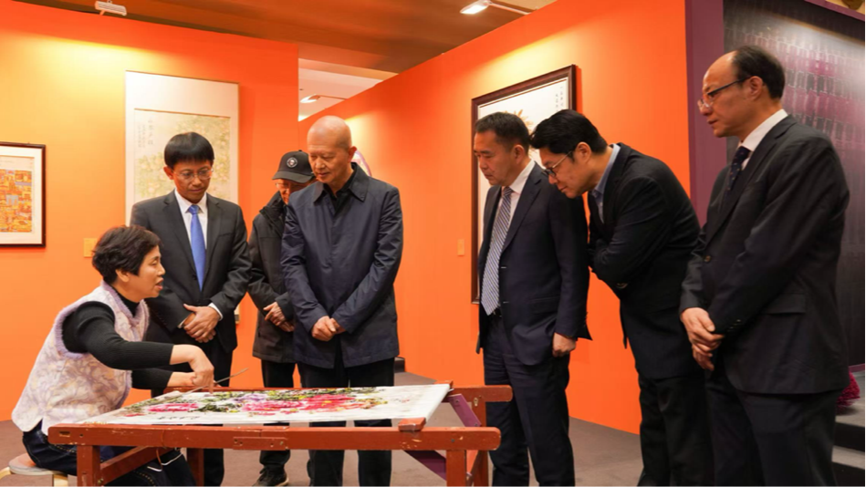 嘉宾正在观赏国家非遗永春纸织画制作