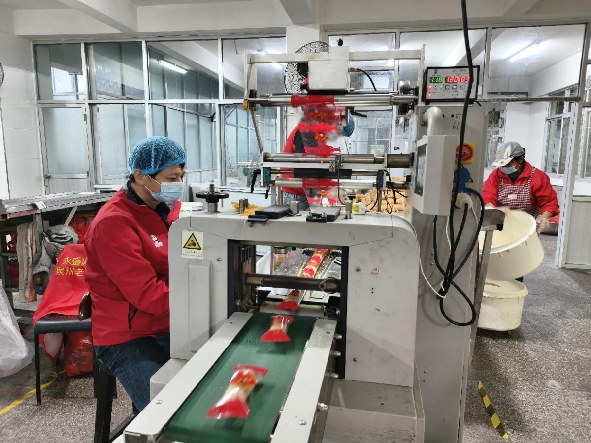 走进达埔永盛麻粩手工制作坊,浓郁的香甜气息扑面而来,工坊内一派热火朝天的忙碌景象。师傅们坚守祖辈传下的非遗手艺,炸果胚、炒料、熬糖、粘料,每一道工序都有条不紊、精益求精,人工与机器高效配合,一个个色泽鲜亮、口感酥脆的麻粩快速成型、打包封装,承载着新年的美好滋味,源源不断销往各地。