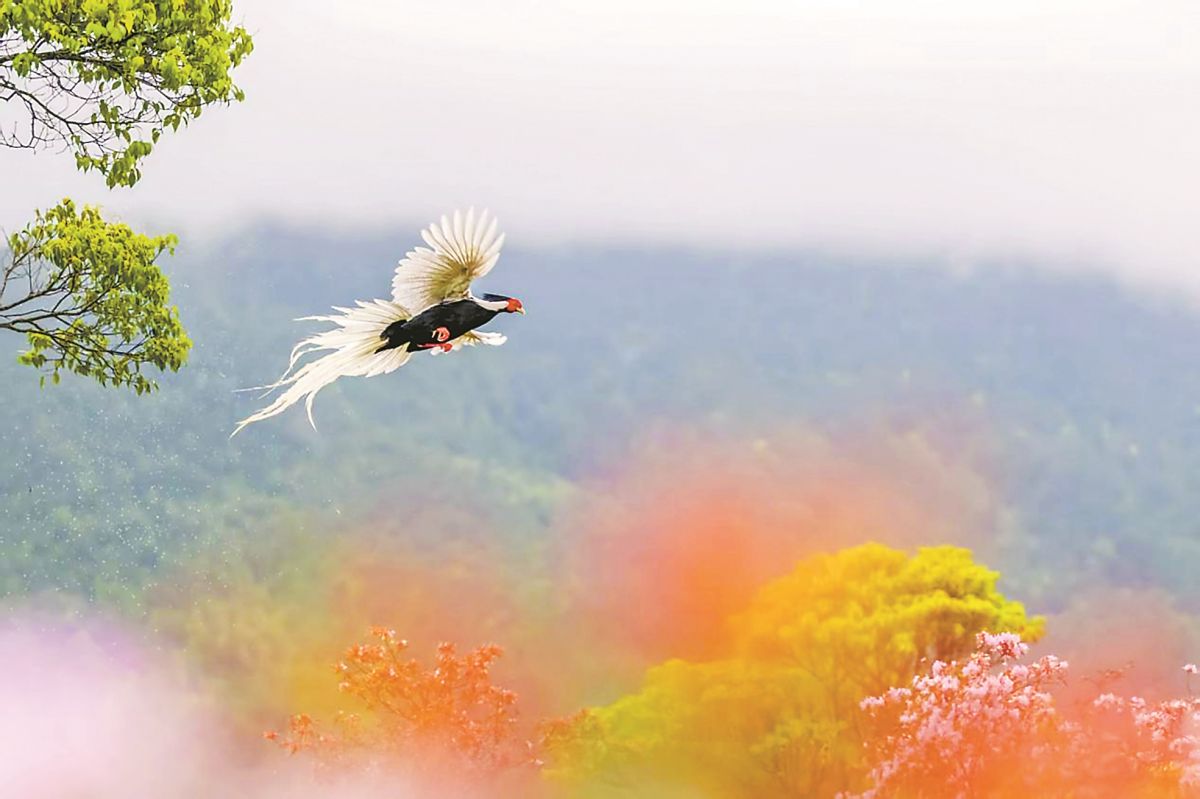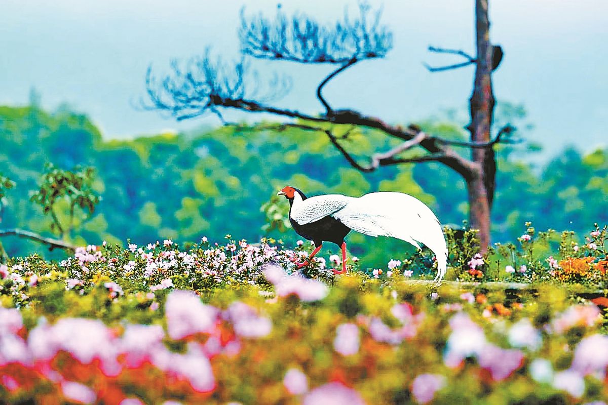12日,在永安市青水畲族乡丰田村的山谷间,大片杜鹃花竞相绽放,粉色花海如霞似锦,将整个山峦装点得如诗如画。就在这片烂漫的花丛中,享有“林中仙子”美称的国家二级保护动物白鹇翩然而至,与杜鹃花上演了一场绝美的“邂逅”。