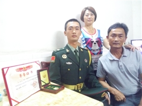 “我们村也有一个阅兵好儿郎,这不光是他们家的荣耀,更是全村人的荣耀!”昨日下午,当记者走进宝盖坑东一区30号时,多位邻居亲朋聚在吴华灯家里,争相欣赏他的阅兵纪念章、荣誉证书及照片。在广东潮州75225部队服役的吴华灯,9月3日参加纪念抗战胜利70周年大阅兵,位列“华南游击队”英模部队方队第十一排第九位。国庆恰好休假探亲,顿时成了村里的新闻人物。