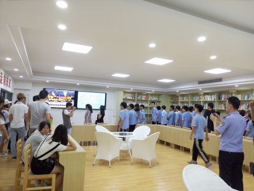 爱心图书室设在警务室的二楼大厅,干净的室内装潢、舒适的座椅、明亮的灯光照明,营造出一种安静气氛,让人有一种想立刻拿起书细细品味的欲望。书架上整齐地排列着各类书籍,儿童读物、经济法律书、文学小说……应有尽有。除此之外,图书室里还配备了电子显示屏,让读者在阅读之余还可以观看一些普法小影片。