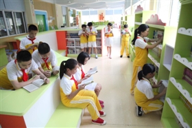 昨日下午3时,记者来到三小这间图书馆。一条蜿蜒曲折的弧线从图书馆中间跨过,天花板上精心绘制着蓝天白云,流水线形的书架有种彩虹般错感,书架上整齐有序地摆着图书,让人无时不想在书海中遨游。