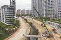 2025-10-14 10:46 来源:石狮日报日前,记者在龟湖溪(宋塘路—香江路)道路工程施工现场看到,在完成第一层水稳层摊铺后,工人们借助起吊机械的精准操控,让两片预制梁稳稳落位,以此