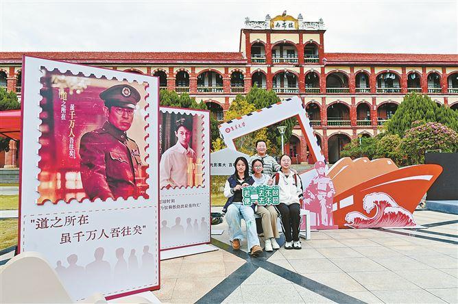 昨日,集美大学在《沉默的荣耀》拍摄点尚忠楼和允恭楼两处增设打卡点。(厦门日报记者 黄晓珍 摄)