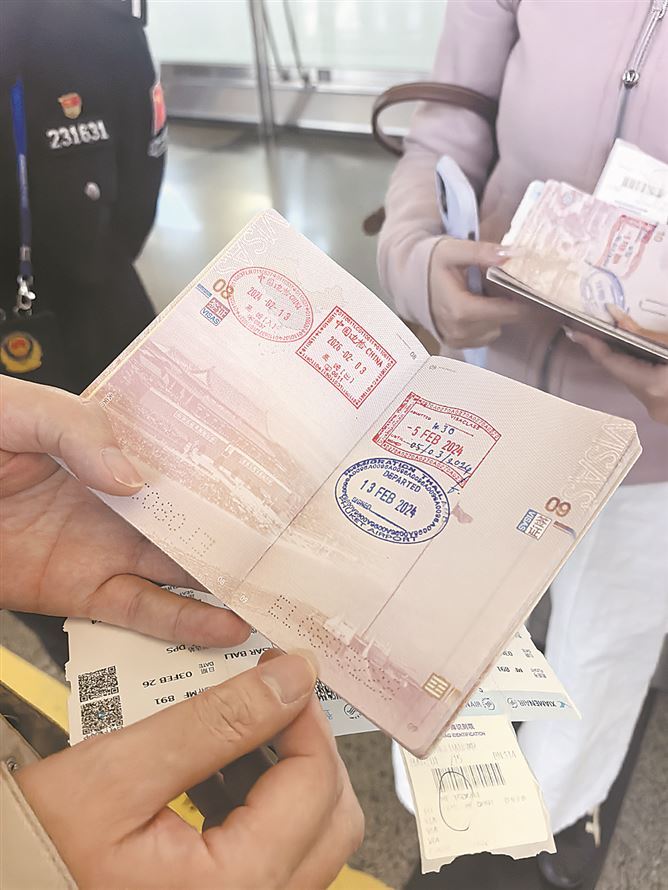 市民林先生一家准备飞往印度尼西亚旅游,他通过快捷通道通关后,特意找到边检民警加盖验讫章。林先生笑着说,每年这个时候都是一家人的出游季,高崎边检见证了他们一次次的出发与归来。