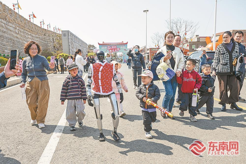 近日,春晚同款机器人亮相崇武古城,吸引不少游客打卡拍照。福建日报通讯员 邓文祥 记者 庄钊滢 摄