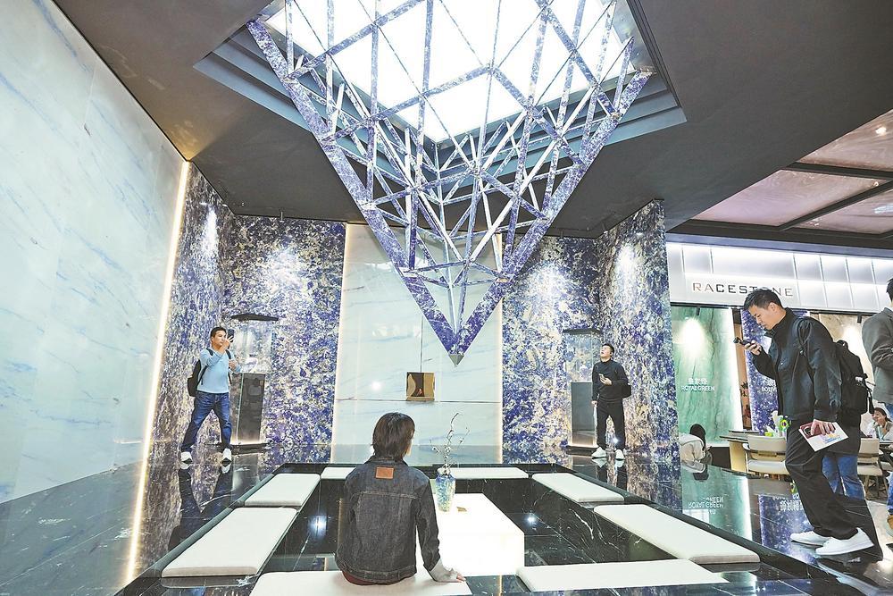 观众在石材展现场打卡。