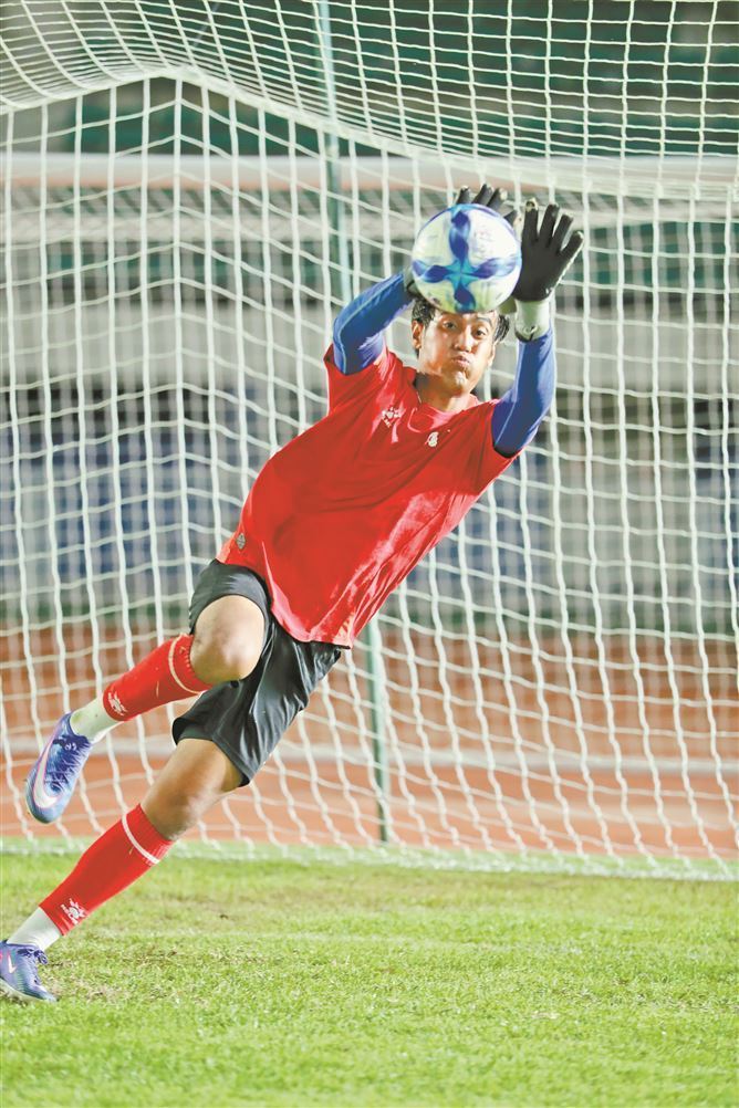 揭幕战首发门将比拉力昨晚进行扑球训练。